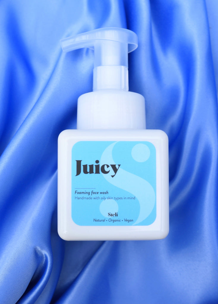 Juicy produces a velvety smooth frothy lather, composed of fast absorbing oils to effortlessly soak up into your skin. Our goal is to restore balance - Juicy will not strip your skin of any oils that it needs to properly function, nor was it made with the intention to dry your skin out. Say goodbye to tight, uncomfortable skin after washing your face.